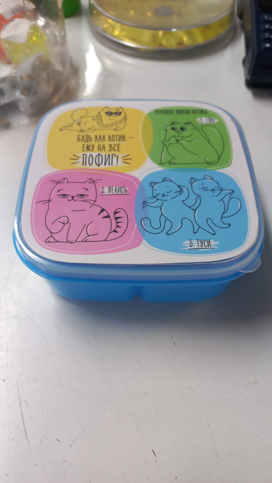 Ланч-бокс 3 отделения с ложкой Кот 400 мл голубой