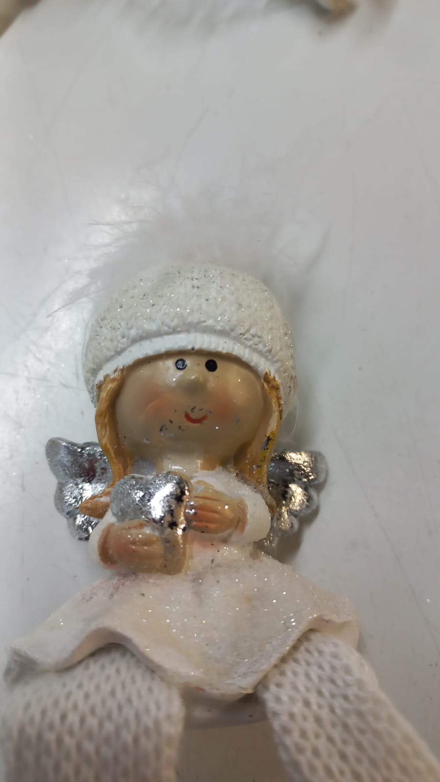 уценка Статуэтка фигурка Ангелочек в шапке пушок сидит на полке 15 см