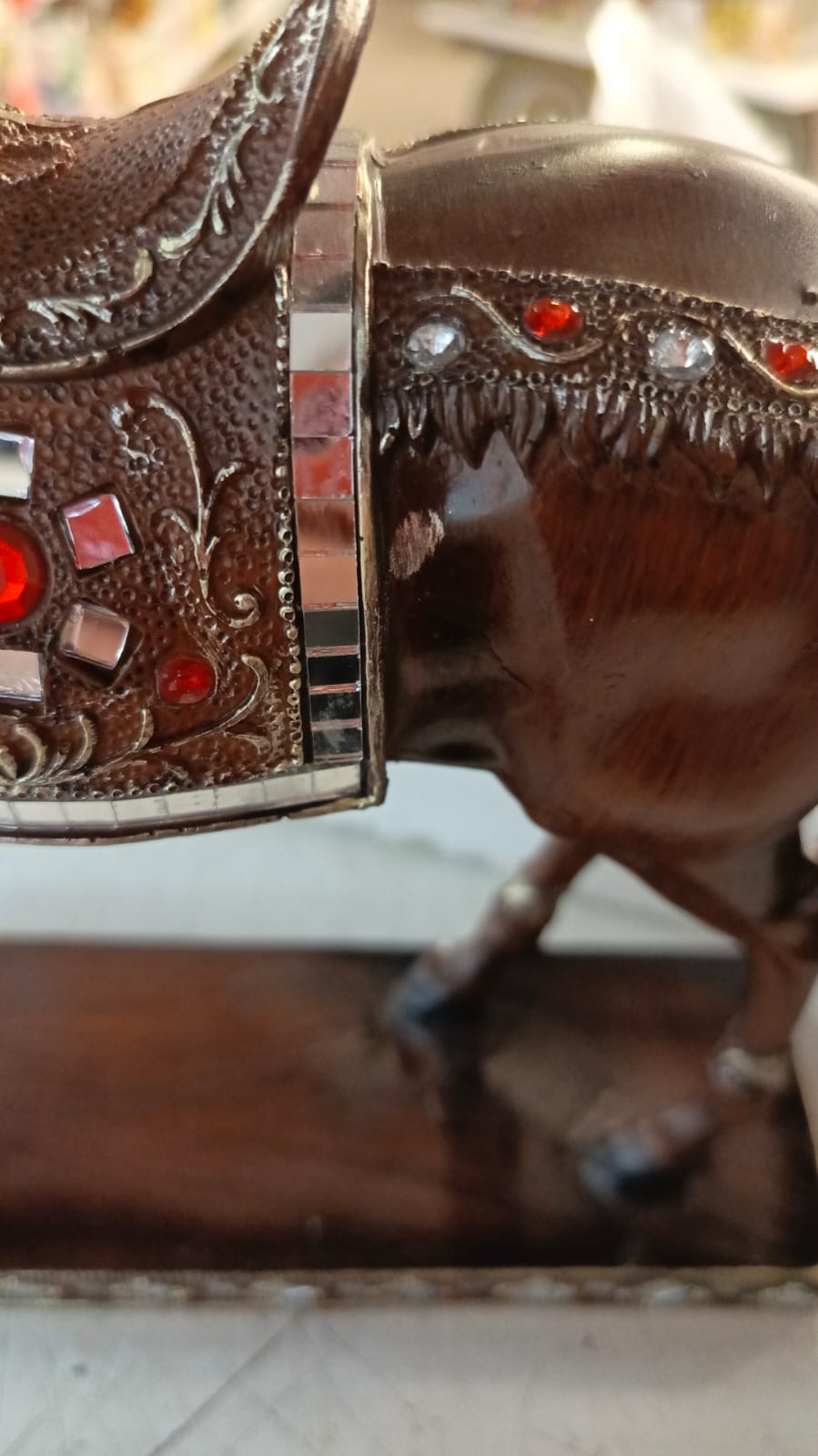уценка Фигурка полистоун Конь с седлом с рубинами - аллюр под дерево, 29.5×7.5×29.5 см