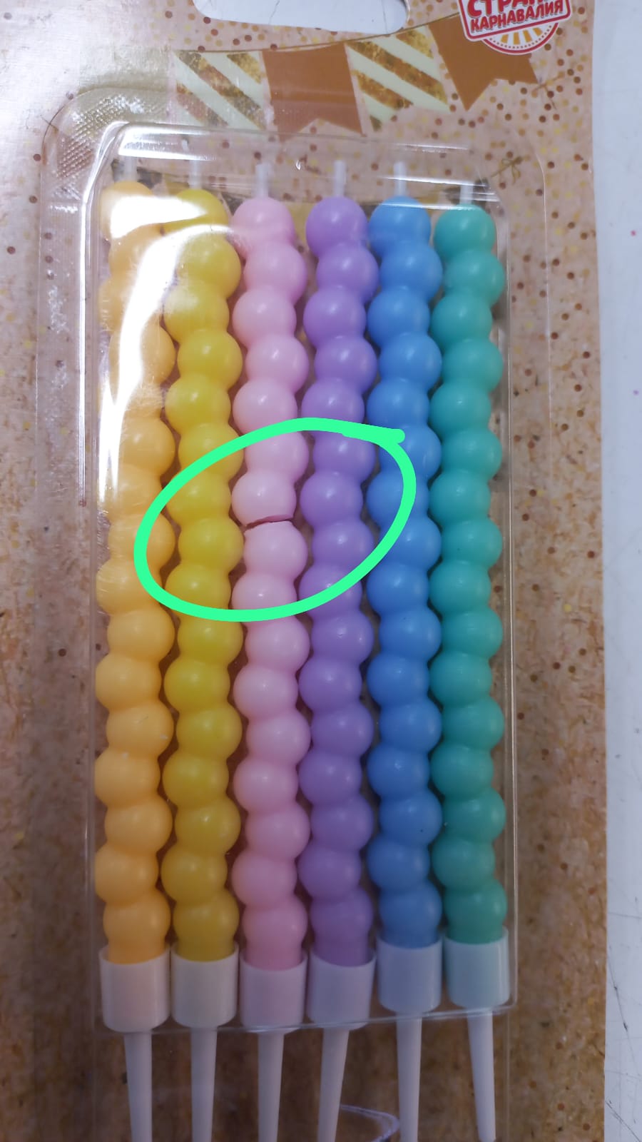 уценка Свечи для торта Жемчужины, 6 шт., разноцветные