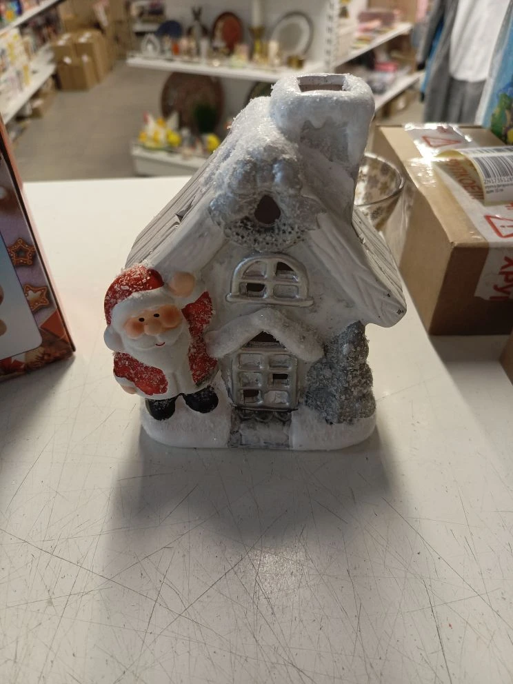 уценка Фигурка светящаяся Дед Мороз у домика керамика