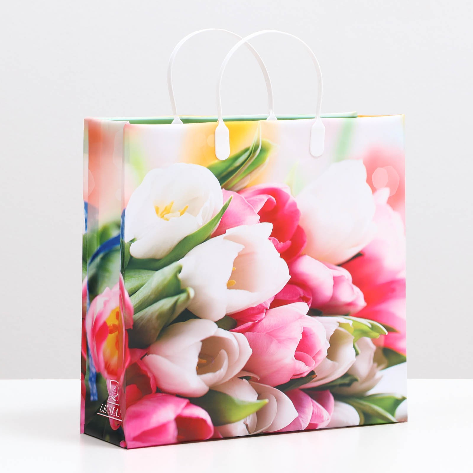 Пакет Нежные тюльпаны, мягкий пластик, 30 x 30 см, 120 мкм