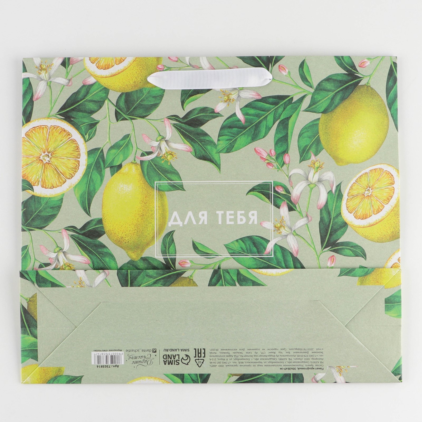 Пакет подарочный крафтовый горизонтальный, Лимончики, M 30 х 26 х 9 см