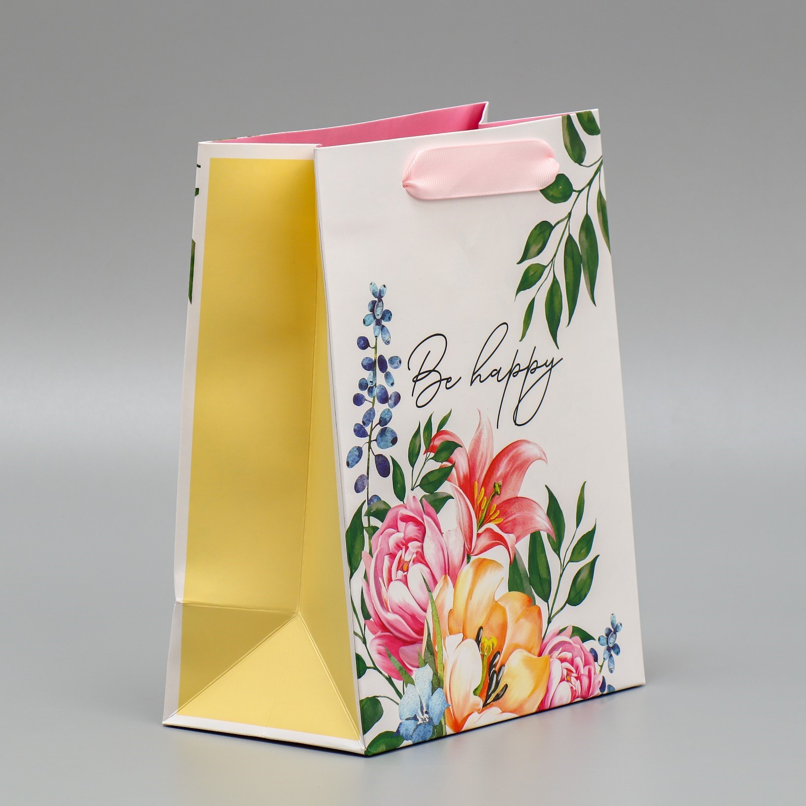 Пакет подарочный ламинированный двухсторонний, упаковка, Будь счастлива MS 18 х 23 х 10 см