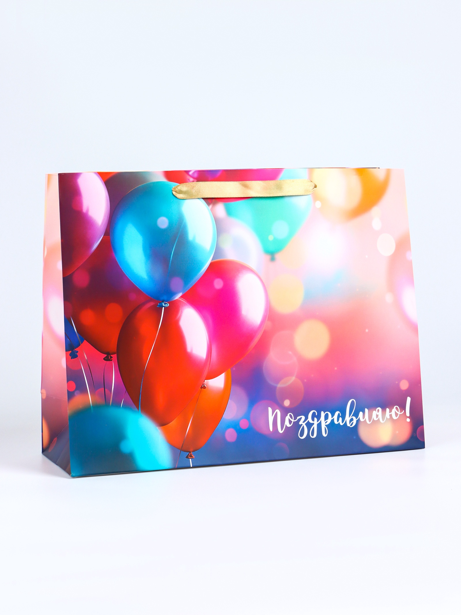 Пакет подарочный ламинированный горизонтальный Поздравляю, L 40 × 31 × 14 см
