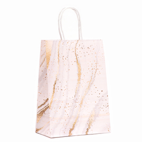 Пакет подарочный крафт, белый-мрамор, 21×15×8 см