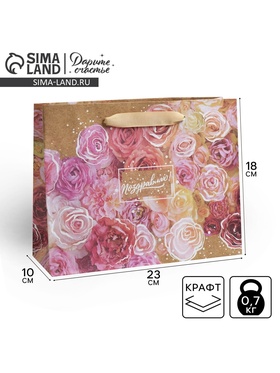 Пакет подарочный крафтовый, упаковка, Цветочное настроение, MS 23 х 18 х 8