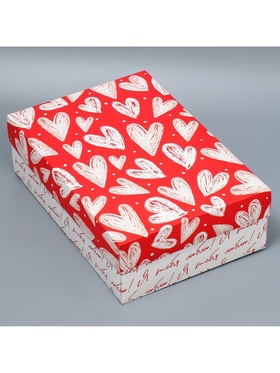 Коробка подарочная складная, упаковка, Сердца, 30×20×9 см