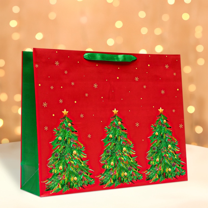 Пакет подарочный новогодний ламинированный «Ёлки» 23х18см