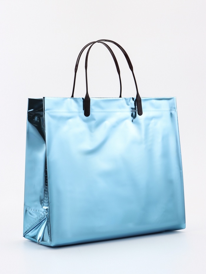 Пакет подарочный ПВХ, голография, голубой, пластиковая ручка, 26×22.5×10 см