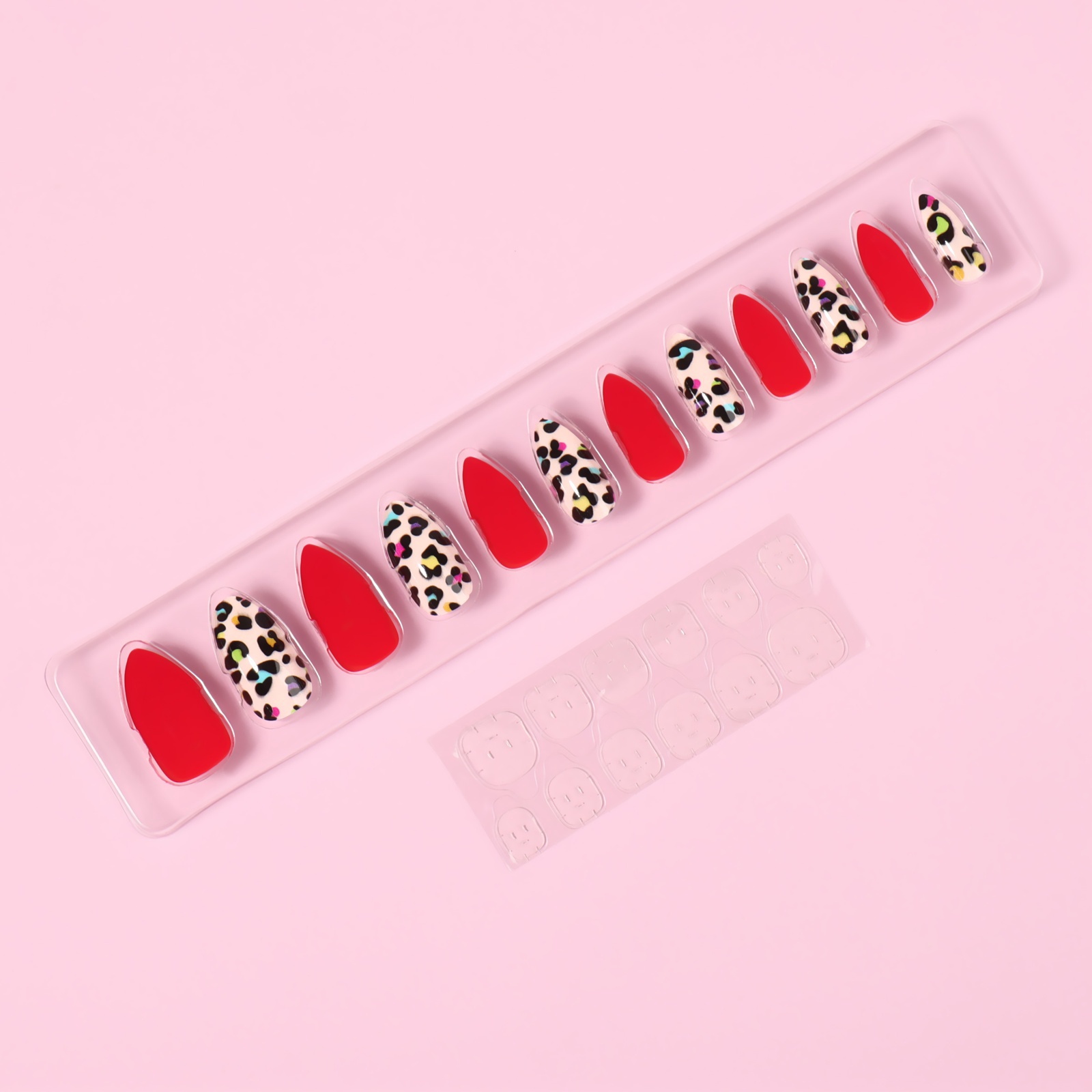 Накладные ногти «Лео», 12 шт, с клеевыми пластинами, форма миндаль, красные, бежевые
