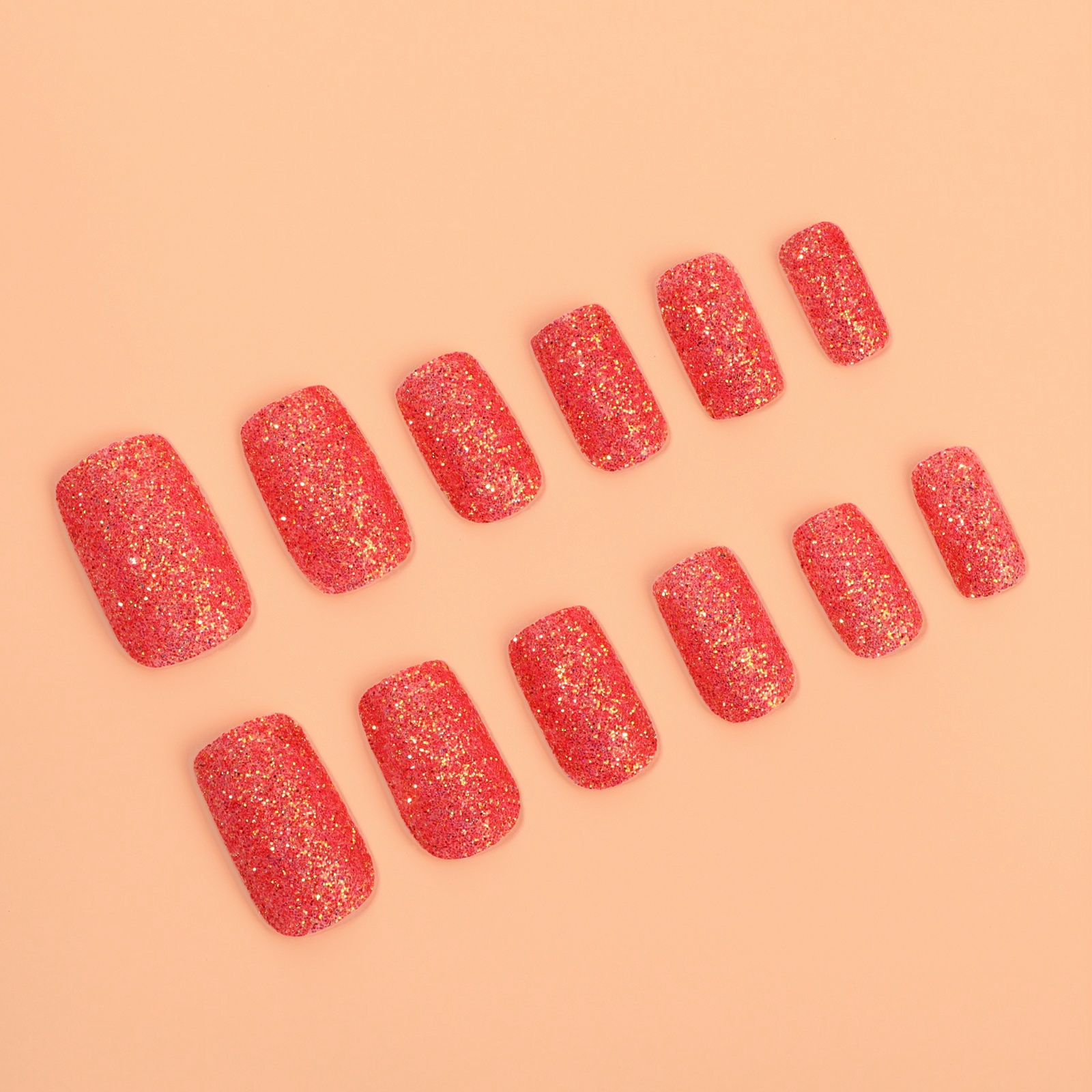 Накладные ногти «Сияние», 12 шт, с блёстками, с клеевыми пластинами, форма мягкий квадрат, красные