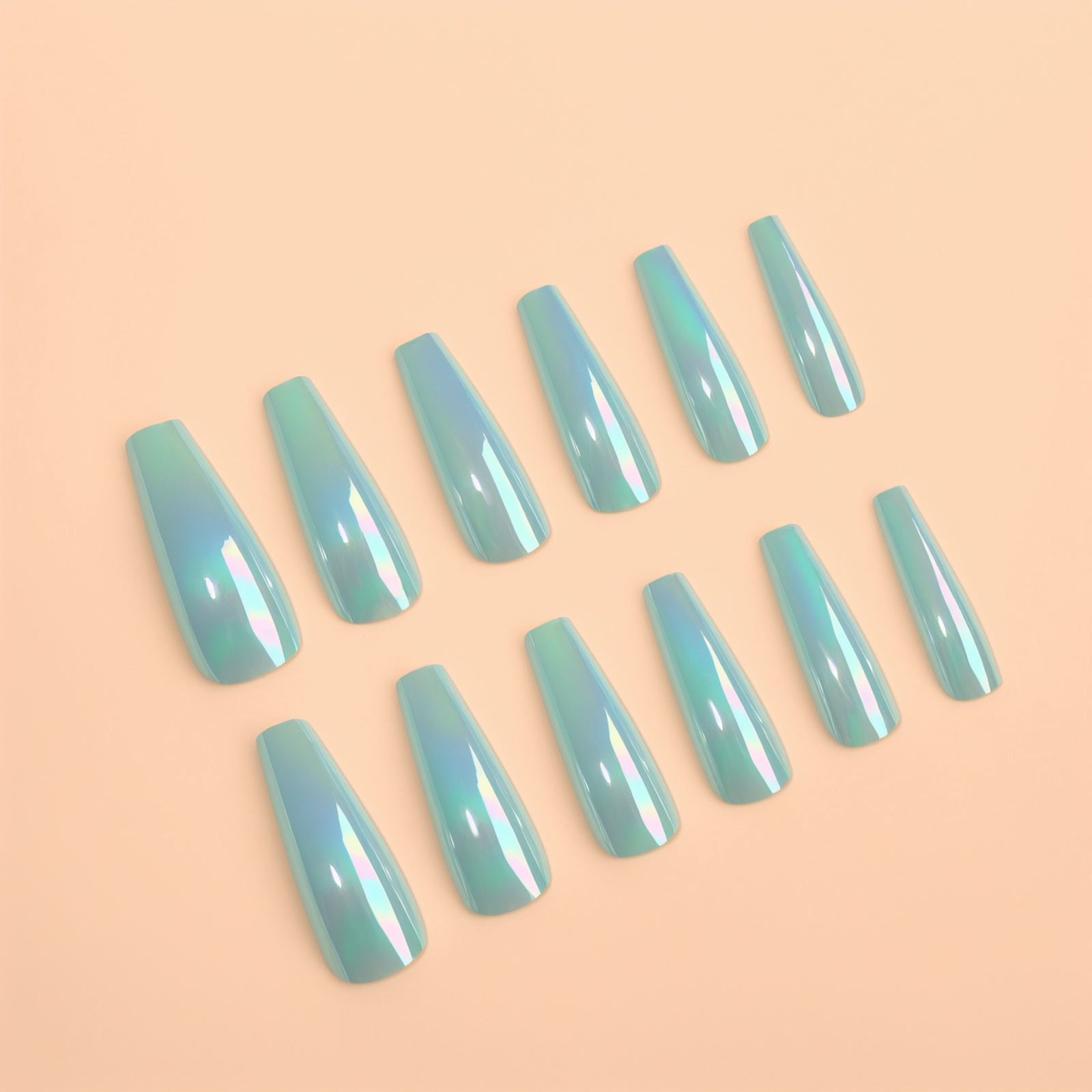 Накладные ногти «Перламутр», 12 шт, с клеевыми пластинами, форма балерина, голубые