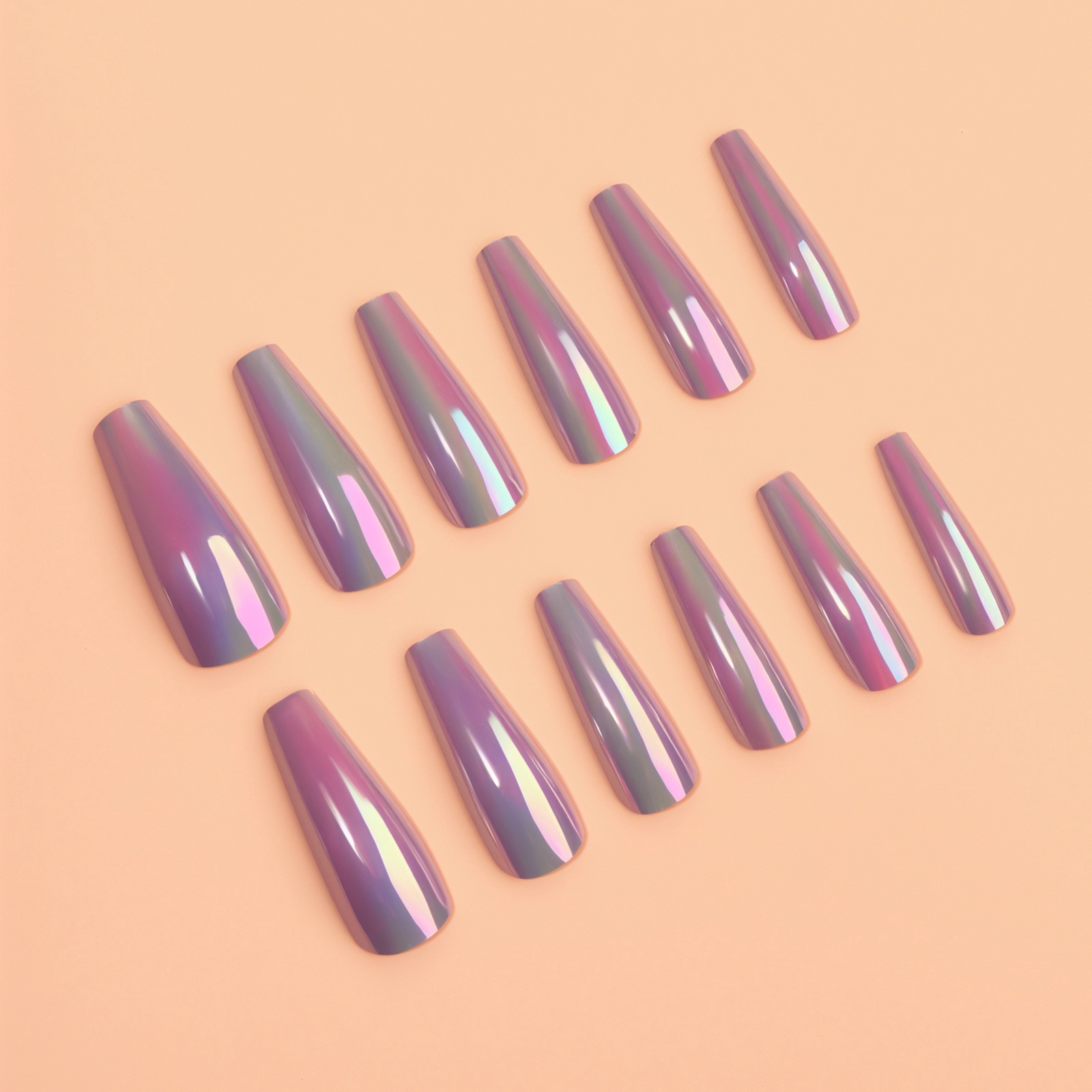Накладные ногти «Перламутр», 12 шт, с клеевыми пластинами, форма балерина, фиолетовые