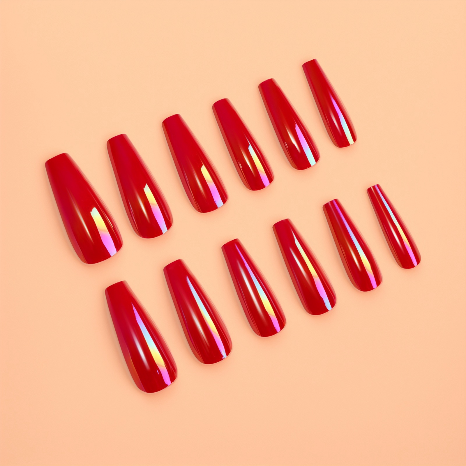 Накладные ногти «Перламутр», 12 шт, с клеевыми пластинами, форма балерина, красные
