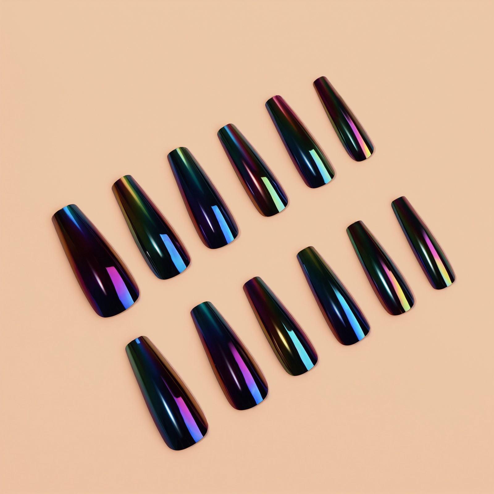 Накладные ногти «Перламутр», 12 шт, с клеевыми пластинами, форма балерина, чёрные