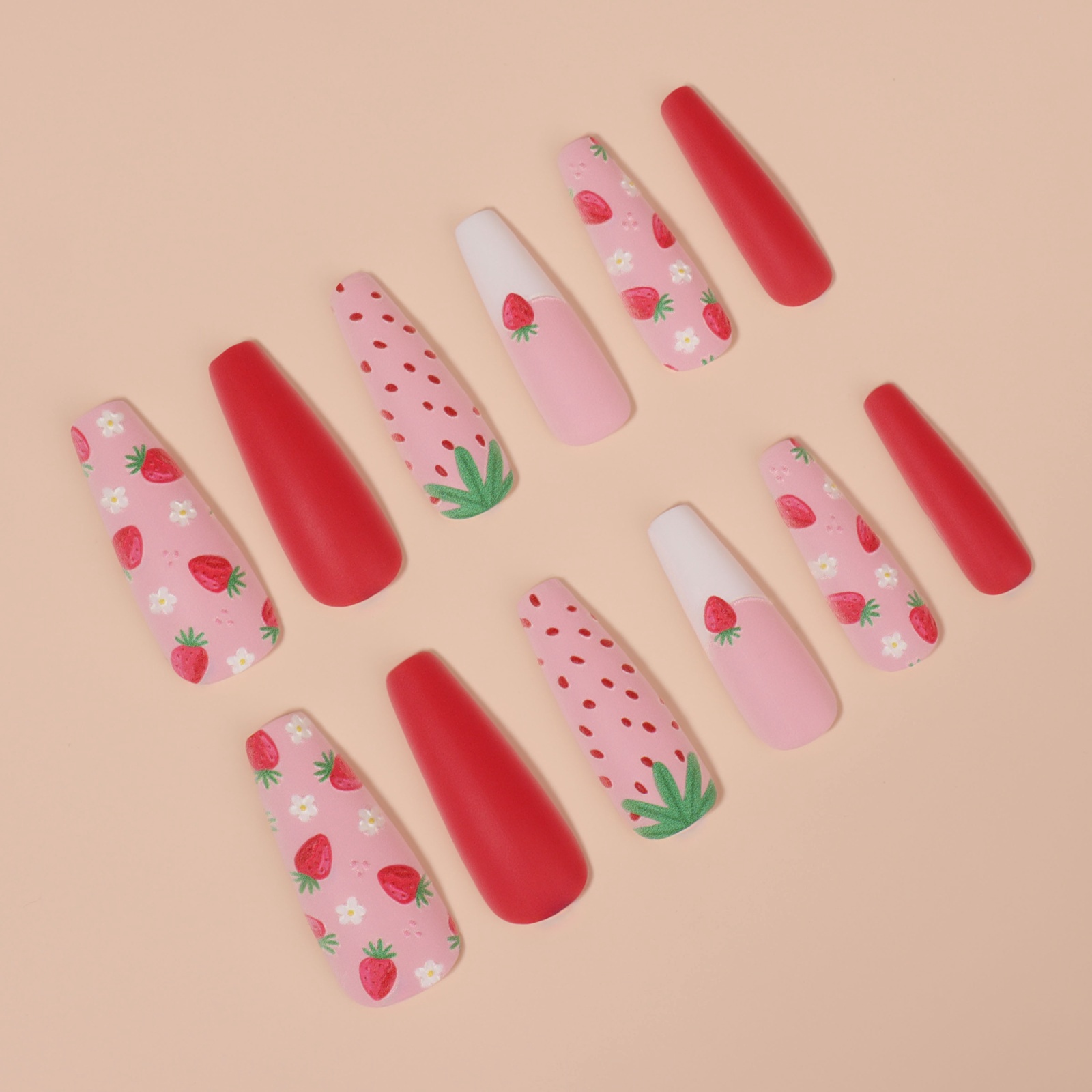 Накладные ногти «Клубничка», 12 шт, с клеевыми пластинами, форма балерина, разноцветные