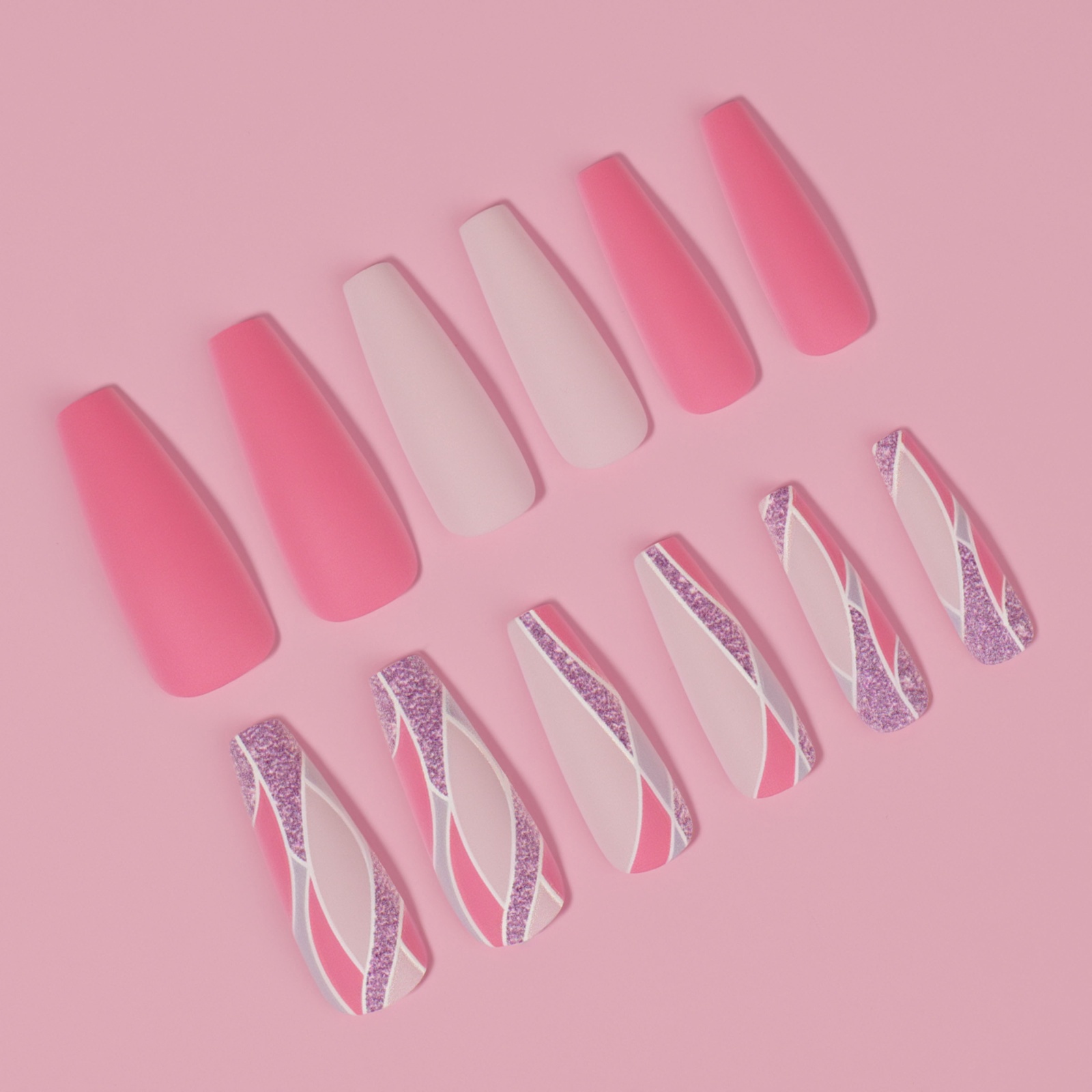 Накладные ногти «Розовое настроение», 12 шт, с клеевыми пластинами, форма балерина, разноцветные