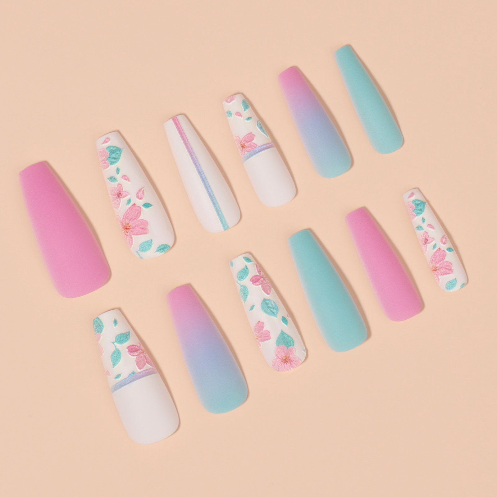Накладные ногти «Цветочки», 12 шт, с клеевыми пластинами, форма балерина, разноцветные