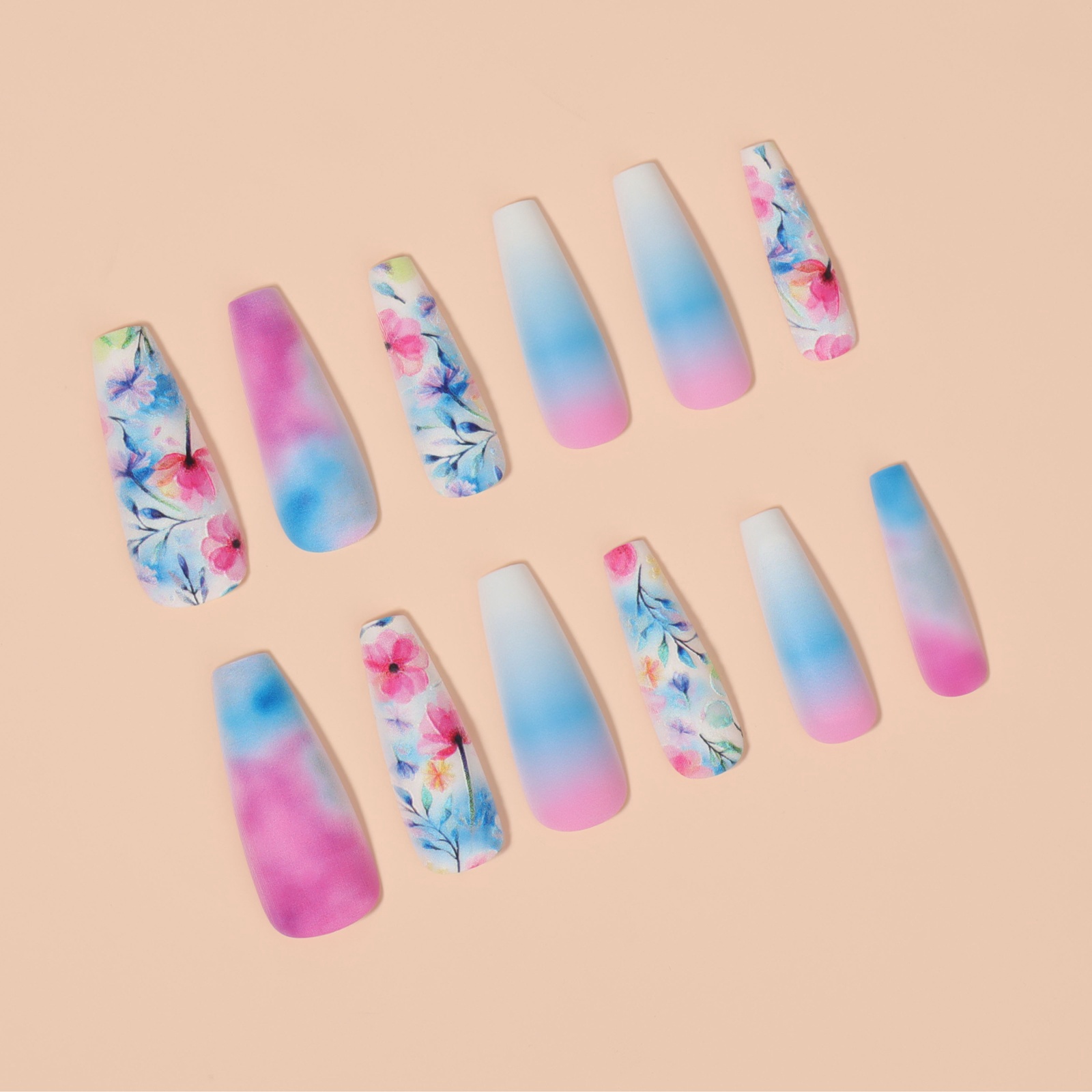 Накладные ногти «Градиент», 12 шт, с клеевыми пластинами, форма балерина, разноцветные