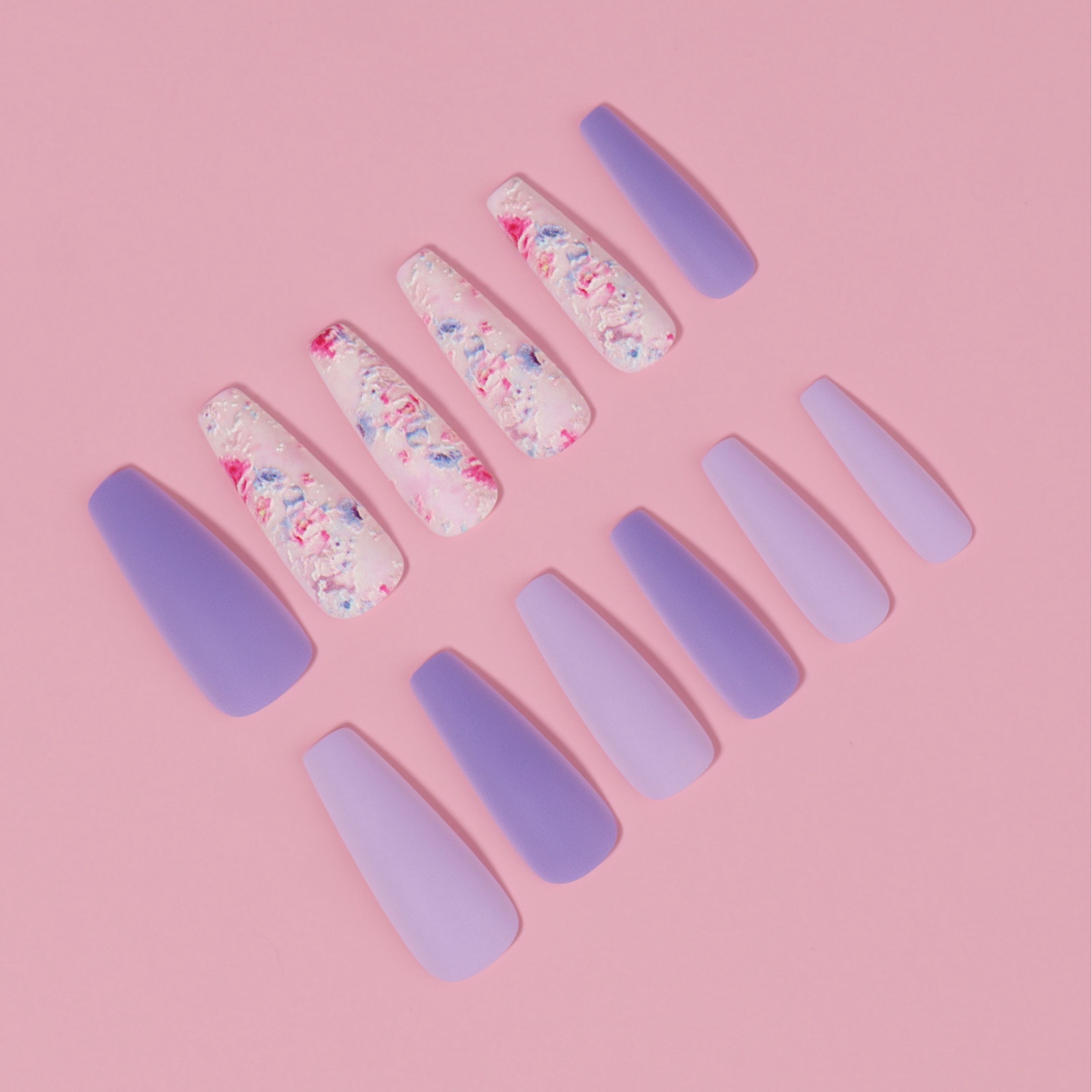 Накладные ногти «Весна», 12 шт, с клеевыми пластинами, форма балерина, разноцветные