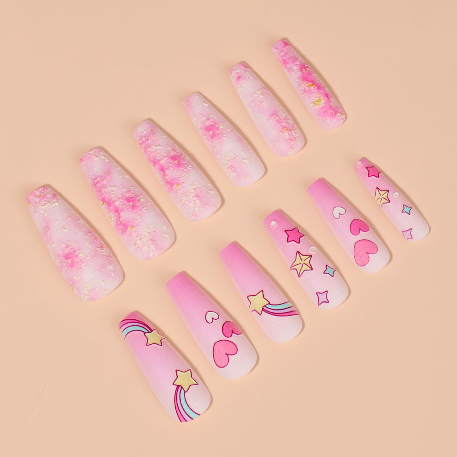 Накладные ногти «Звёздочка», 12 шт, с клеевыми пластинами, форма балерина, розовые