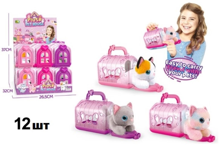 Котик (14см) с аксессуарами (домик-переноска), 3 цвета
