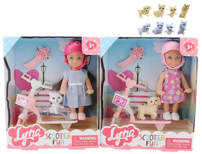 Кукла(12см) Lyna на самокате с аксессуарами,2 вида в коробке