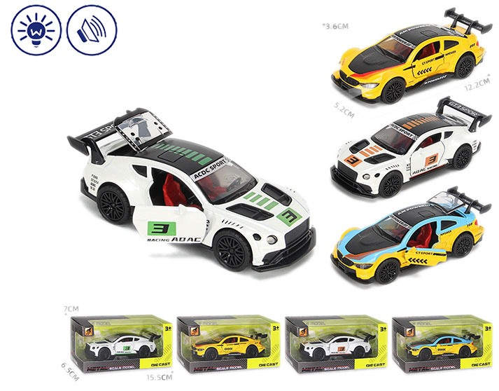 Машина инерционная на батарейках(свет,звук),белый/желтый в
