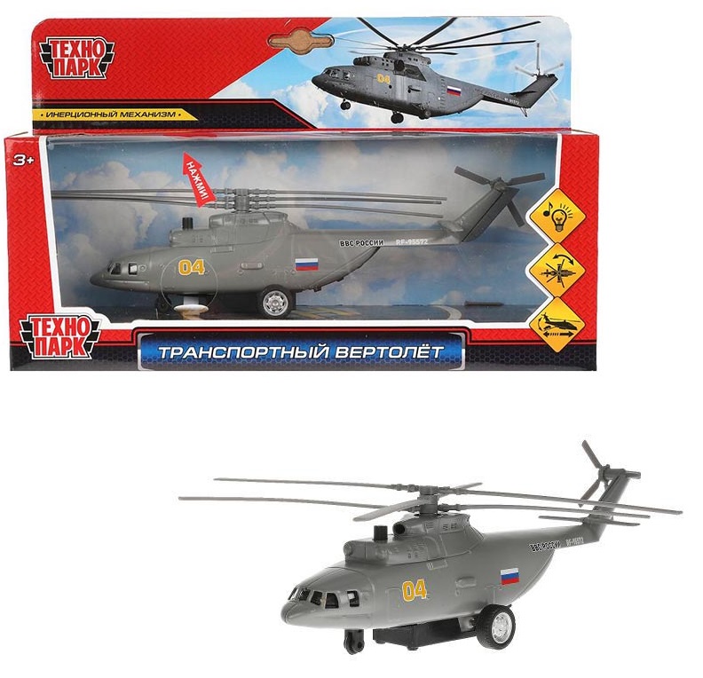 Модель Вертолет транспортный 20 см металлическая свет звук