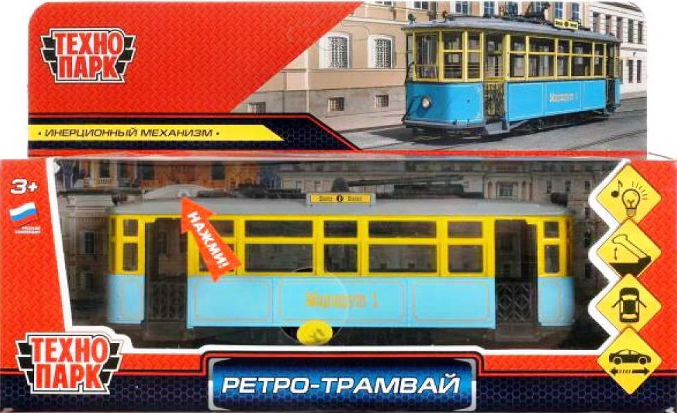 Модель Трамвай ретро 17 см металлическая инерционная