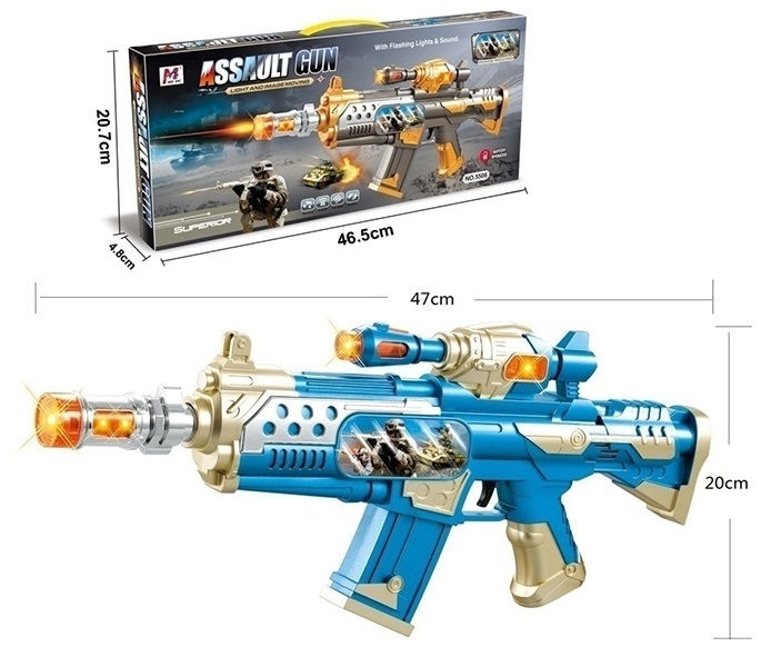 Автомат (длина 46см) на батарейках (свет,звук),голубой/серый