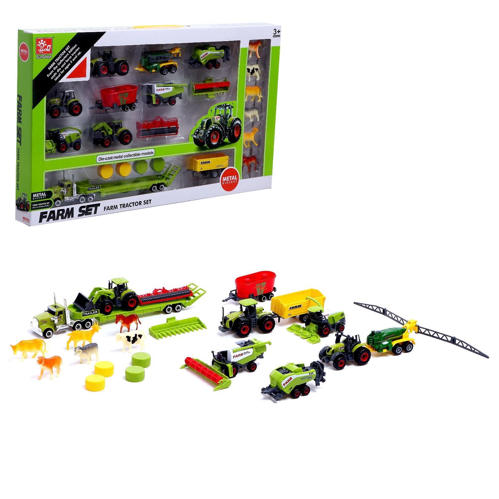 Набор металлических тракторов Ферма с животными, МИКС