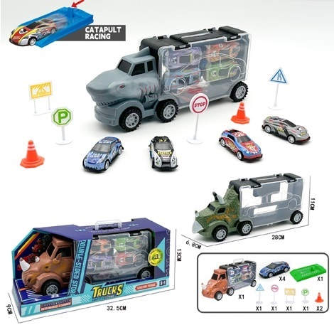 Набор 'Автотрек' (12 предметов) с автовозом,3 вида в коробке