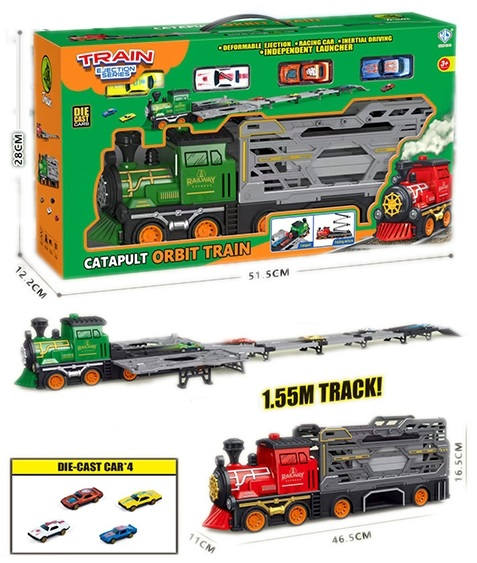 Набор 'Автотрек' Паровоз красный/зеленый в коробке: машинка