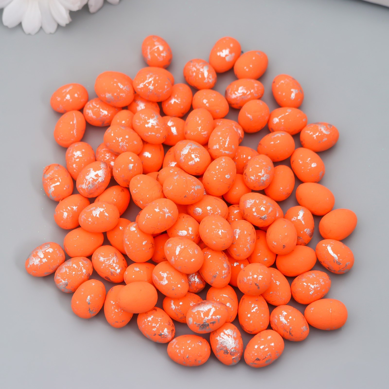 Декор пасхальный Яйцо серебристая крапинка, набор 100 шт оранжевый. Размер одного яйца 1,5х1,8 см. Размер упаковки 8х8х8 см. Состав пенопласт. Отличный подарок на пасху. Украсит праздничный стол.