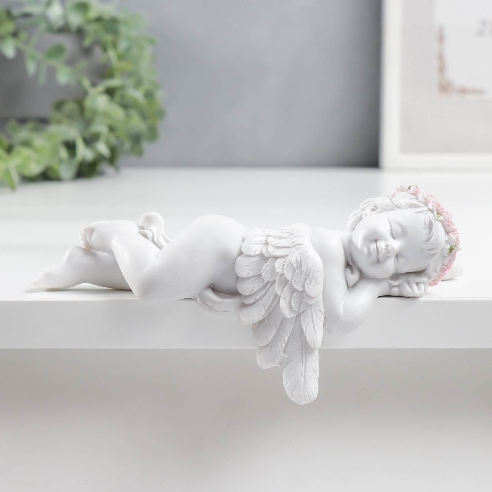 Статуэтка на полкку Спящий белоснежный ангел с венком 16 см