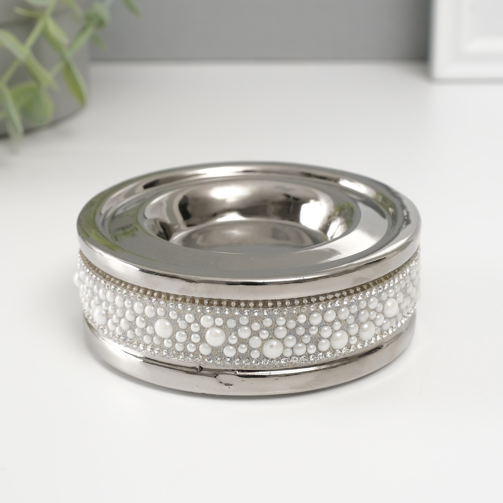 Подсвечник керамика на 1 свечу "Ожерелье" d=4,5 см серебро 10х10х3,5 см 10481961