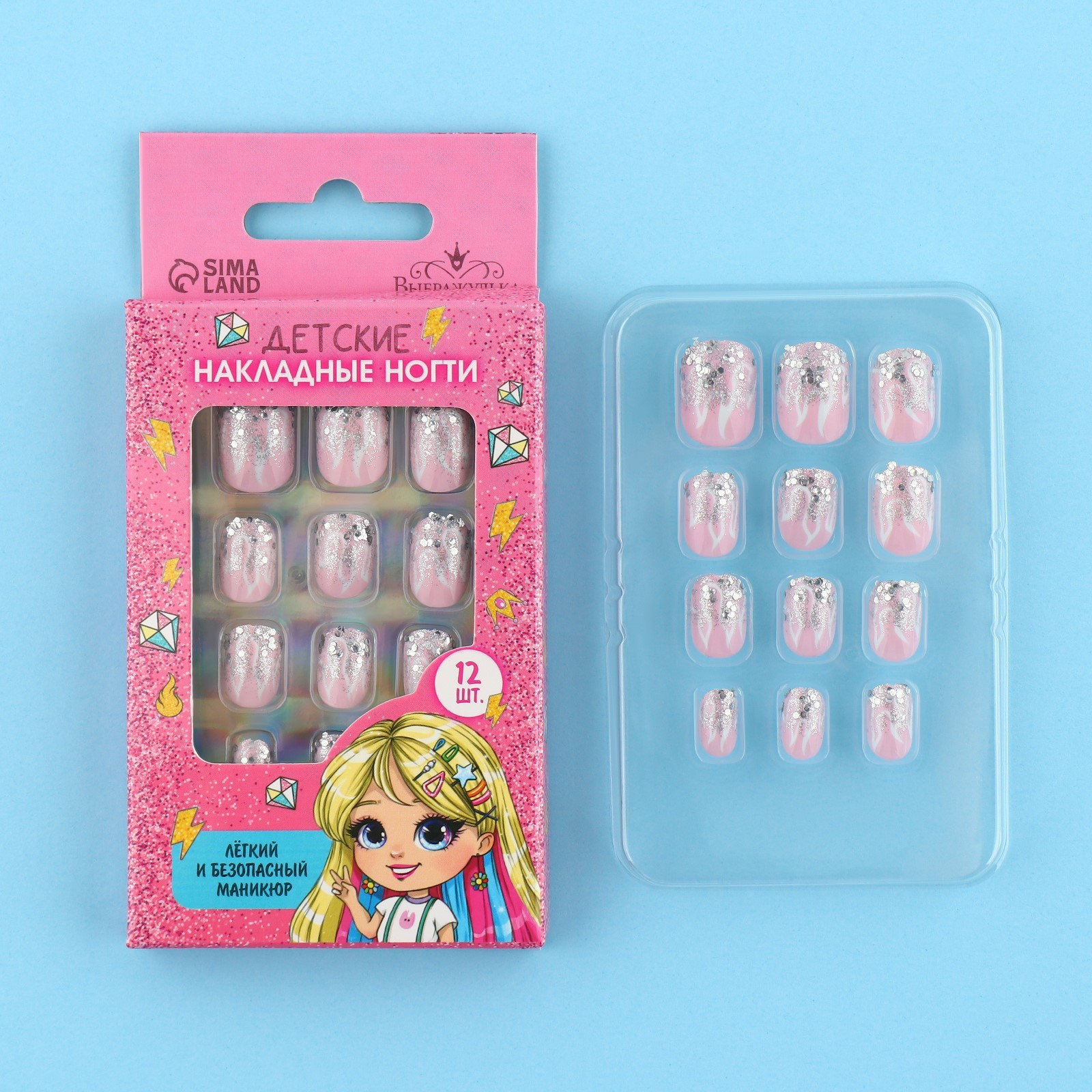 Детские накладные ногти Огонь, 12 шт