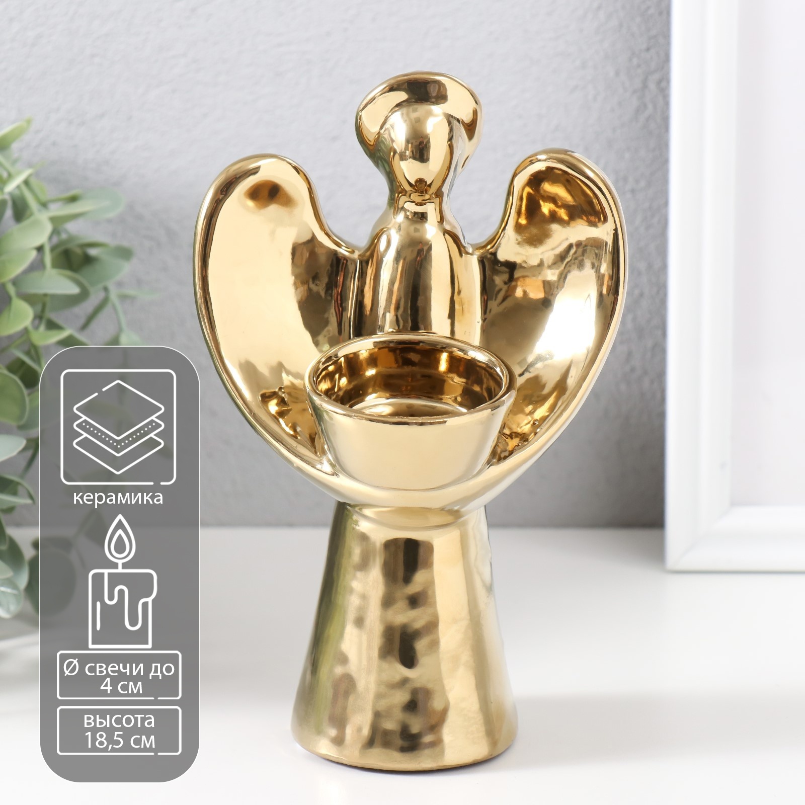 Подсвечник керамика на 1 свечу ангел с нимбом d 4 см золото 11,5х10х18,5 см