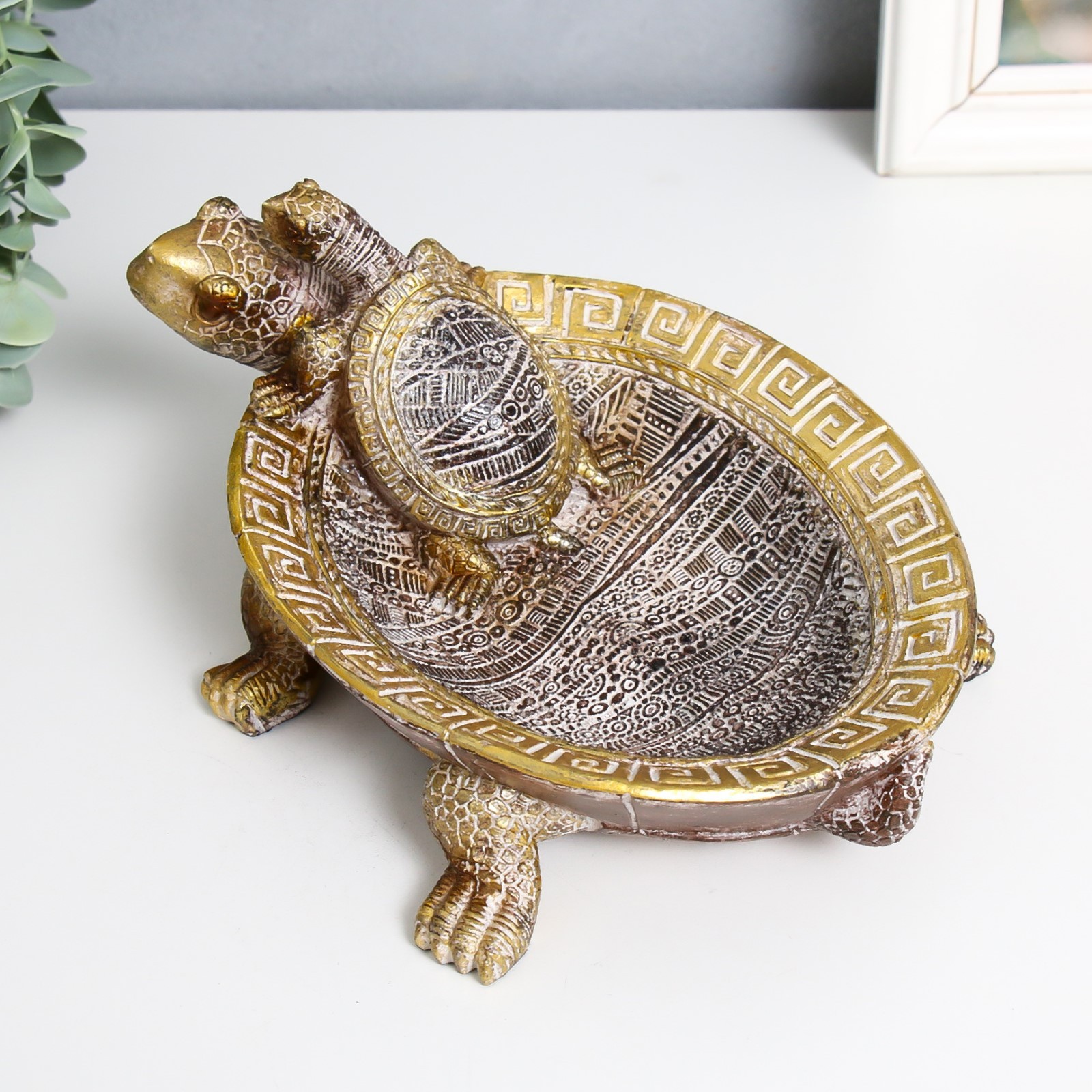 Фигурка-подставка для мелочей полистоун Черепаха сухопутная с золотым узором, 22×25.5×9 см