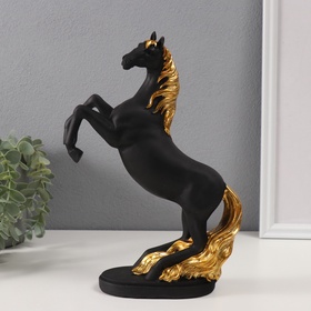 Фигурка полистоун Конь чёрный с золотой гривой, 6.7×19.5×28 см