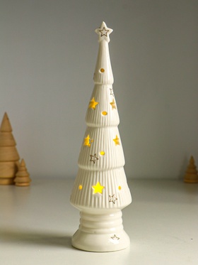Фигурка светящаяся Ёлочка со звёздами керамика, белый с золотом