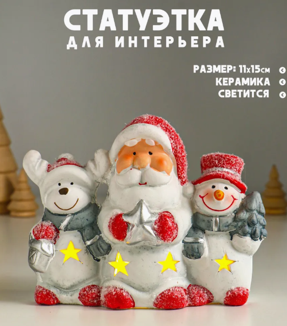 Фигурка светящаяся Дед Мороз снеговик и лосик