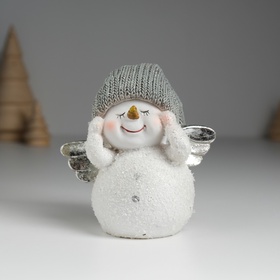 Фигурка полистоун Снеговик белый с серебристыми крыльями, в вязанном колпаке, 9×6×9 см