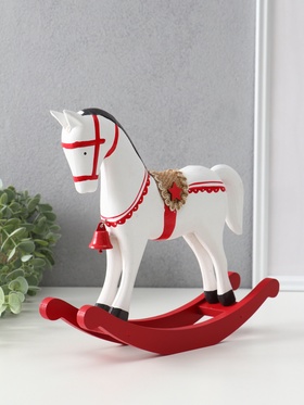 Фигура дерево Лошадка-качалка, белая с красным декором, 26.5×6.5×22.5 см