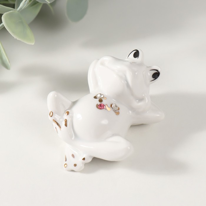 Фигурка керамика «Лягуха на отдыхе», белый с золотом, стразы, 4.5×4×6.2 см