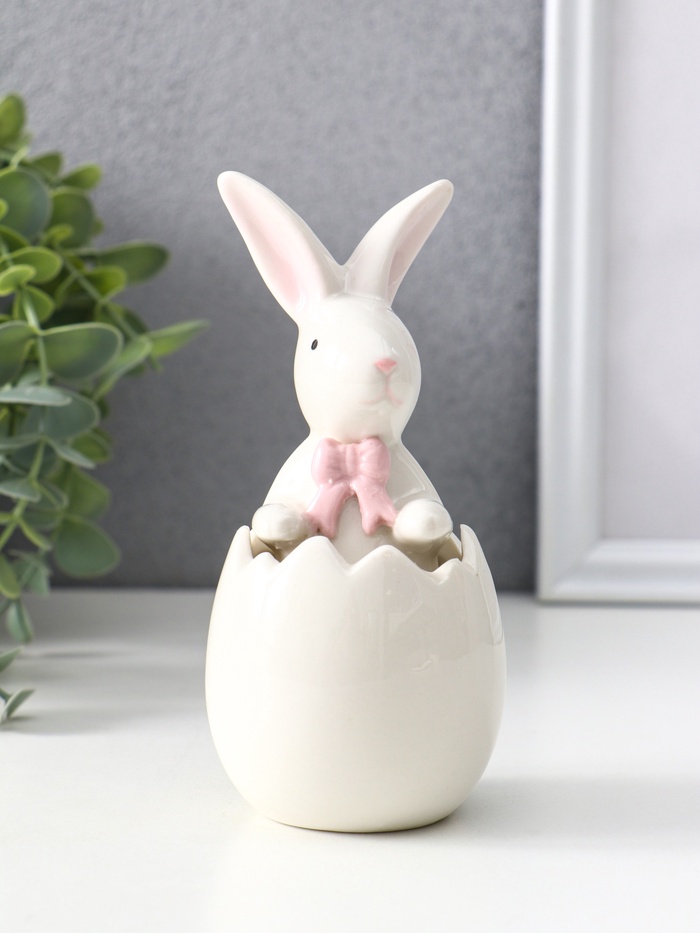 Фигурка керамика «Белый кролик с бантиком в скорлупе» 5×7.5×13.5 см