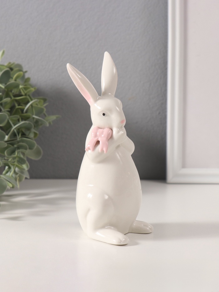 Фигурка керамика «Белый кролик с розовым бантиком», 6×6.5×16 см