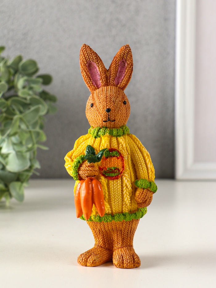 Фигурка полистоун «Заяц в вязанном свитере с охапкой моркови», 6.5×6.5×15.5 см
